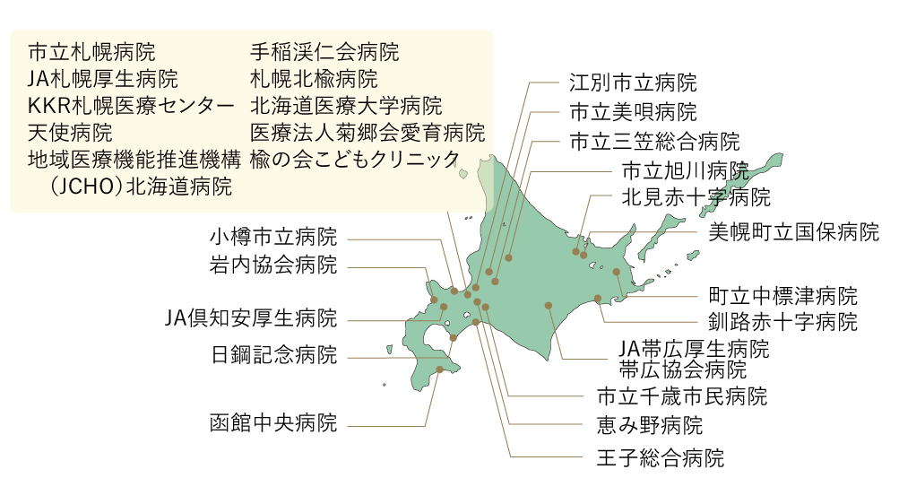 北海道大学小児科の協力・関連病院はそのうち4施設です。