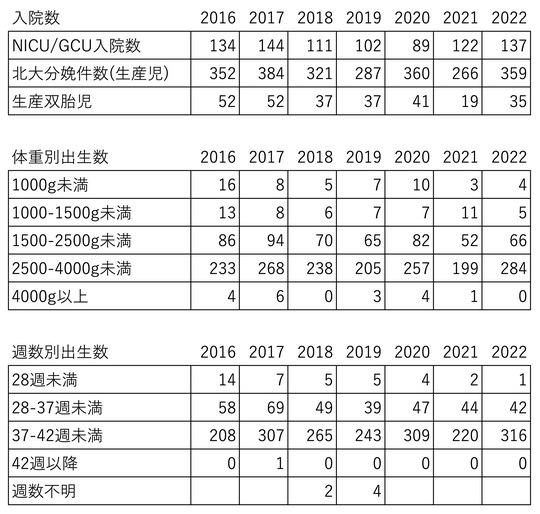 ●NICU9床、GCU11床と、新生児室が入院病床です。