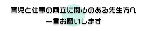 - 育児も仕事も無理をしてはいけません。困難である場合には、周囲の人に相談しましょう。