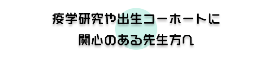 私は2021年1月に環境健康科学研究教育センターに異動し、主に2つの出生コーホートを基盤として、実際の調査や疫学研究を行っています。1つ目は、2011年に環境省が開始した「子どもの健康と環境に関する全国調査(エコチル調査)」で、全国15地域、約10万組の子どもとその両親を対象とした疫学調査です。調査票や母体血・臍帯血などの生体試料などを用いて、胎児期から前向きに追跡し、環境と子どもの健康を調査しています。2つ目は、エコチル調査より10年早い、2001年に開始した全道約2万組を対象とした「環境と子どもの健康に関する研究・北海道スタディ」で、我が国の先駆的な大規模出生コーホートで、エコチル調査のモデルにもなっています(詳細は、当センターホームページ https://www.cehs.hokudai.ac.jp/をご参照ください)。