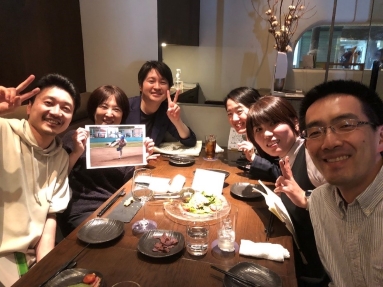 内分泌グループの仲間たち。中村明枝先生がお持ちの写真は竹崎俊一郎先生(免疫グループ、現KKR医療センター)の北日本小児科学会野球大会での御雄姿です。