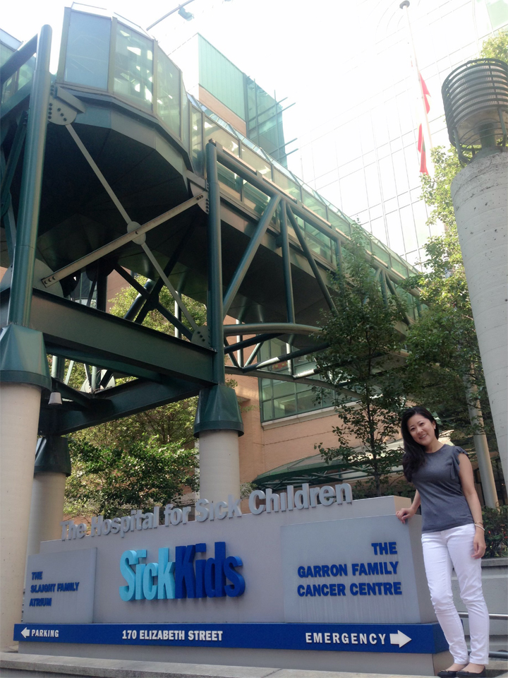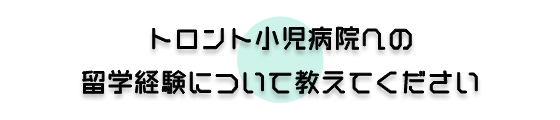 私は関連病院での研修の後、神経グループとして大学院に戻り、主に難治性てんかんの脳磁図研究を学びました。その後、小児難治性患者の発作治癒を目指し、大学院4年目(2013年)にカナダ、トロント小児病院神経生理学研究所で脳磁図を用いた限局性皮質形成異常の研究、診断技術(AdSPM)の開発に携わりました。現在、同院でAdSPMはてんかん外科術前に臨床応用されその精度の向上に貢献しています。その後、同院神経科で臨床医として働き、世界水準で体系的な医学教育と北米での標準的治療を学びました。またトロント小児病院では、日常的に多数の様々な人種、言語、文化、宗教を背景に持つ患者様に対応しており、多様性に対しても一貫した高い水準の医療の提供を保障するために構築された様々なシステムを学ぶことができました。最も大変であったことは、極めて理論的で体系化された医学教育の中で培われた膨大な理論と知識を持つ同僚達と対等に渡り歩くために毎日猛烈に勉強をしなければならなかったことと、評価に耐えうる研究、臨床そして教育を両立して行うことでした。