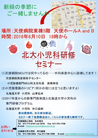 北大小児科研修 セミナー(@天使病院)を開催します!
