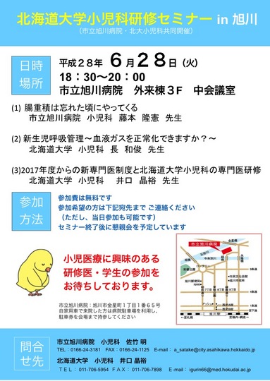 北大小児科研修 セミナー(@市立旭川病院)を開催します!