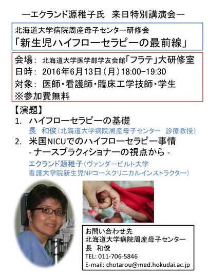 北海道大学病院周産母子センター研修会「新生児ハイフローセラピーの最前線」