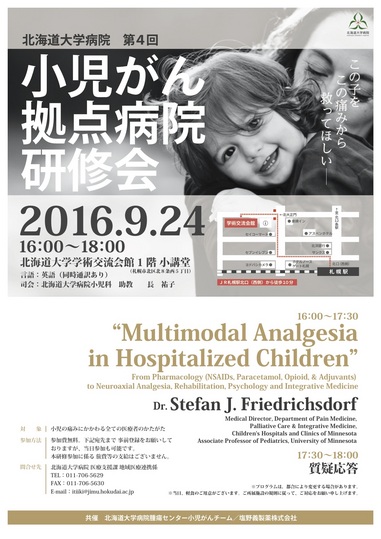 ミネソタ小児病院緩和科のStefan J. Friedrichsdorf先生をお招きして、がん性疼痛のみならず、処置をはじめ様々な場面での小児の疼痛緩和に関するお話を伺います。