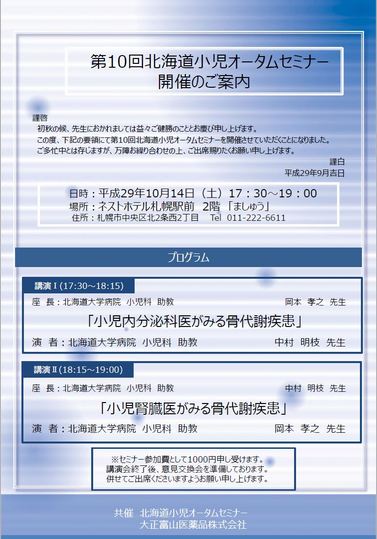 10月開催の北大小児研修説明会に引き続き開催されるオータムセミナーのお知らせです。
