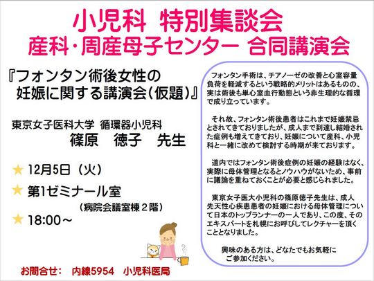 「フォンタン術後女性の妊娠に関する講演会(仮題)」