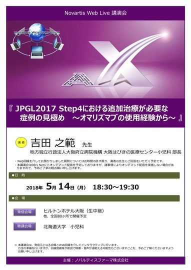 気管支喘息・慢性蕁麻疹に適応のある抗IgE抗体「ゾレア」のwebカンファが北海道大学小児科内で行われます。参加ご希望の先生は4/26までに竹崎(shunt@med.hokudai.ac.jp)までご連絡ください。