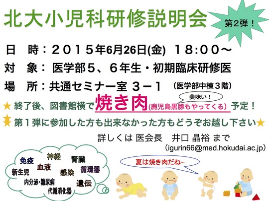 北海道大学小児科研修説明会(第2弾)を開催します。
